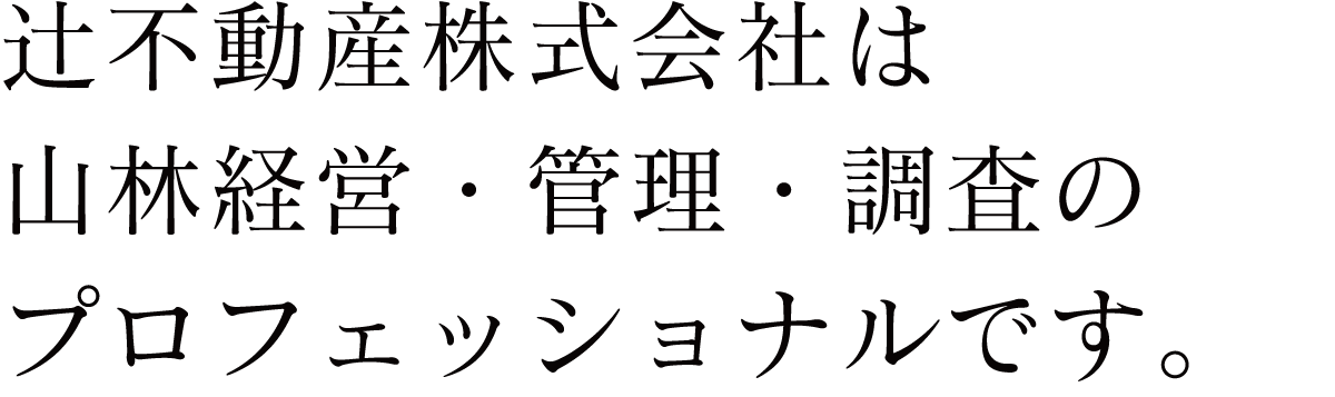 辻󠄀不動産株式会社では、人々の暮らしを守る山林の大切な機能を将来に亘り発揮し続けるため、 長年培ってきた知識と技術を活かし、安定した山林経営と適正な山林管理および山林調査を行い、 環境保全と未来へつながる豊かな山林づくりに取り組んでいます。 山林のことなら何でもお任せください。