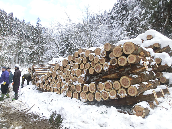 伐採され集積された木材